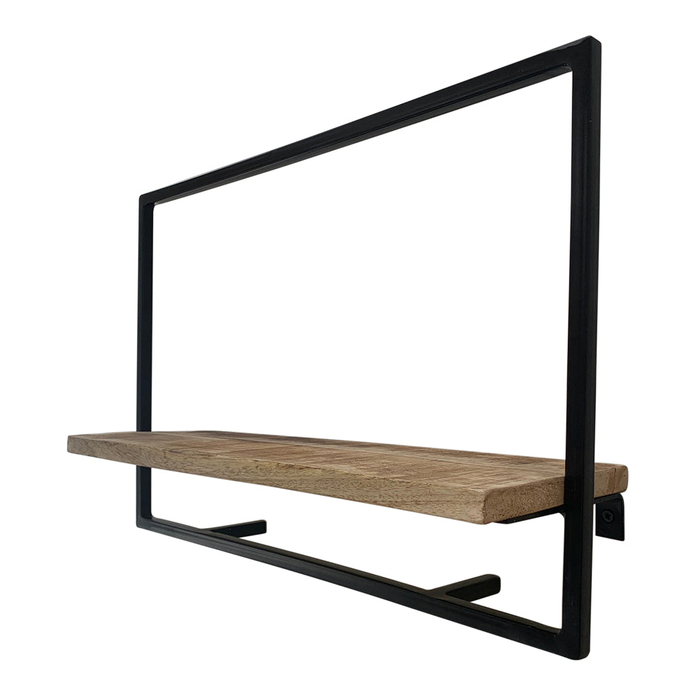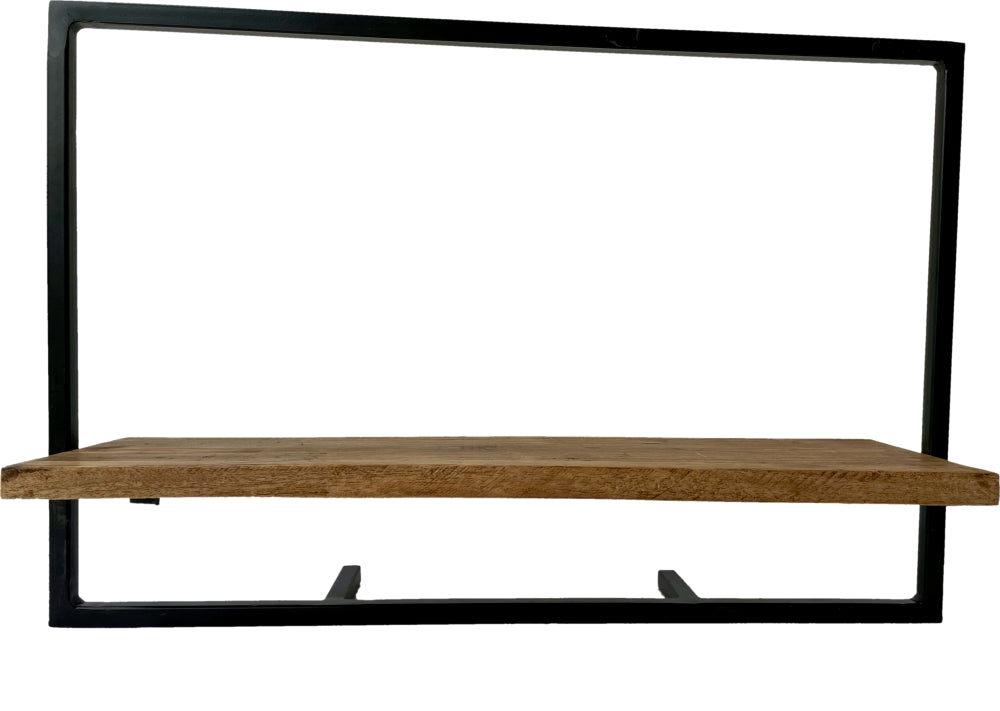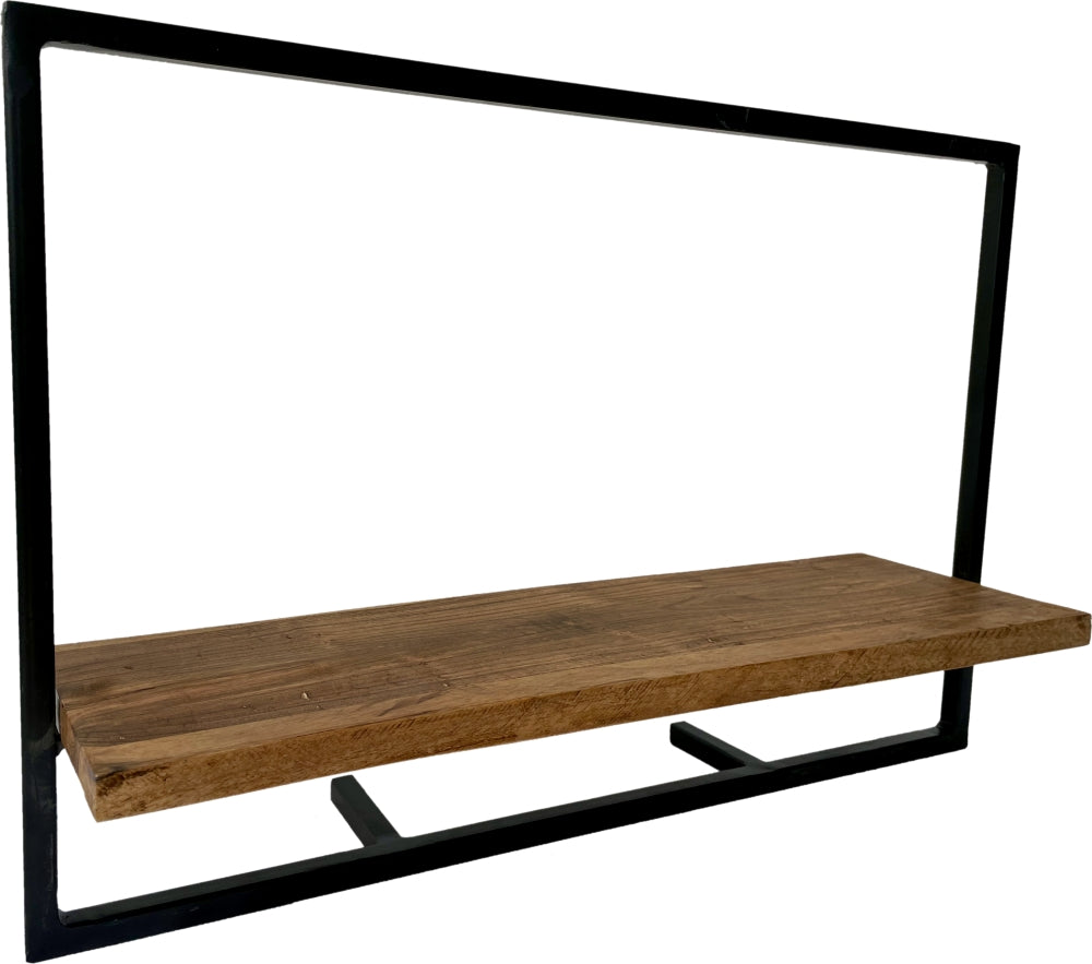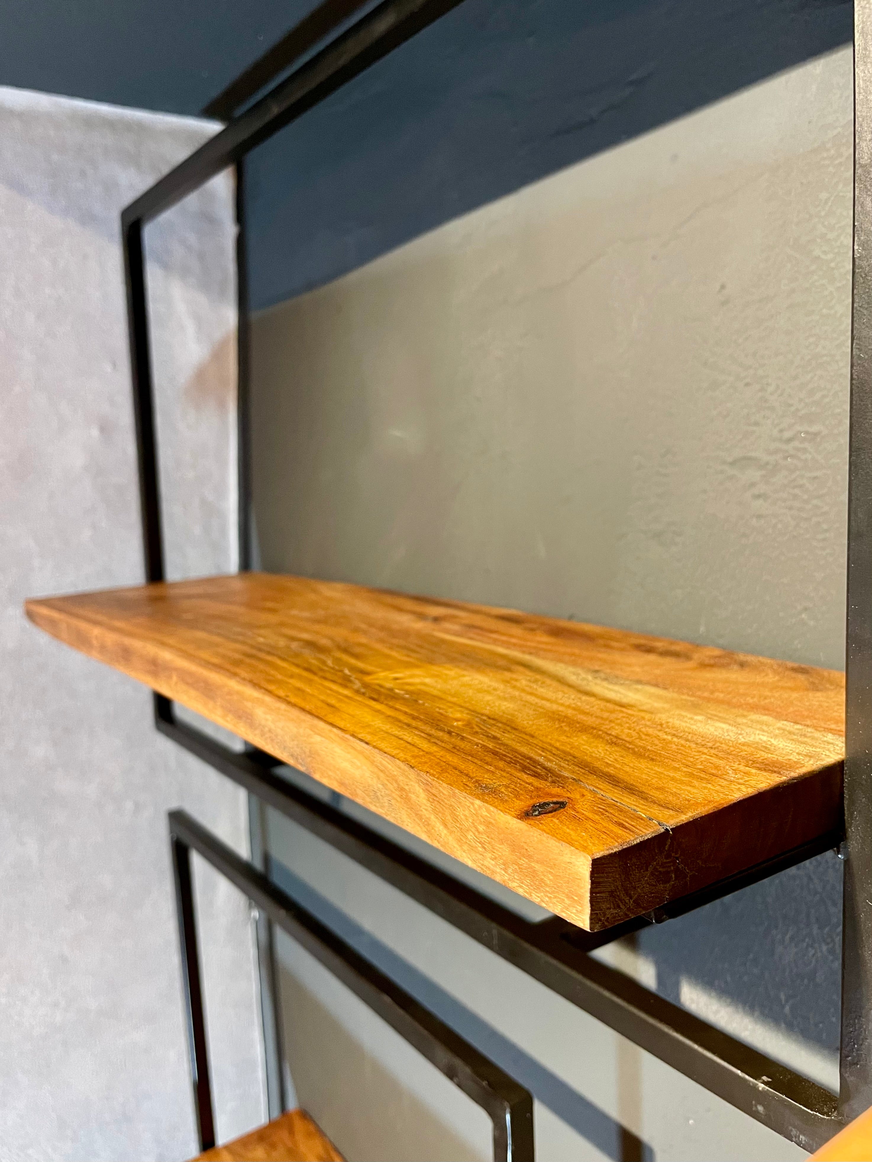 Wandregal Gr. L im industrial look aus massiven Mangoholz (leicht geölt) und mit einer Metallfassung.