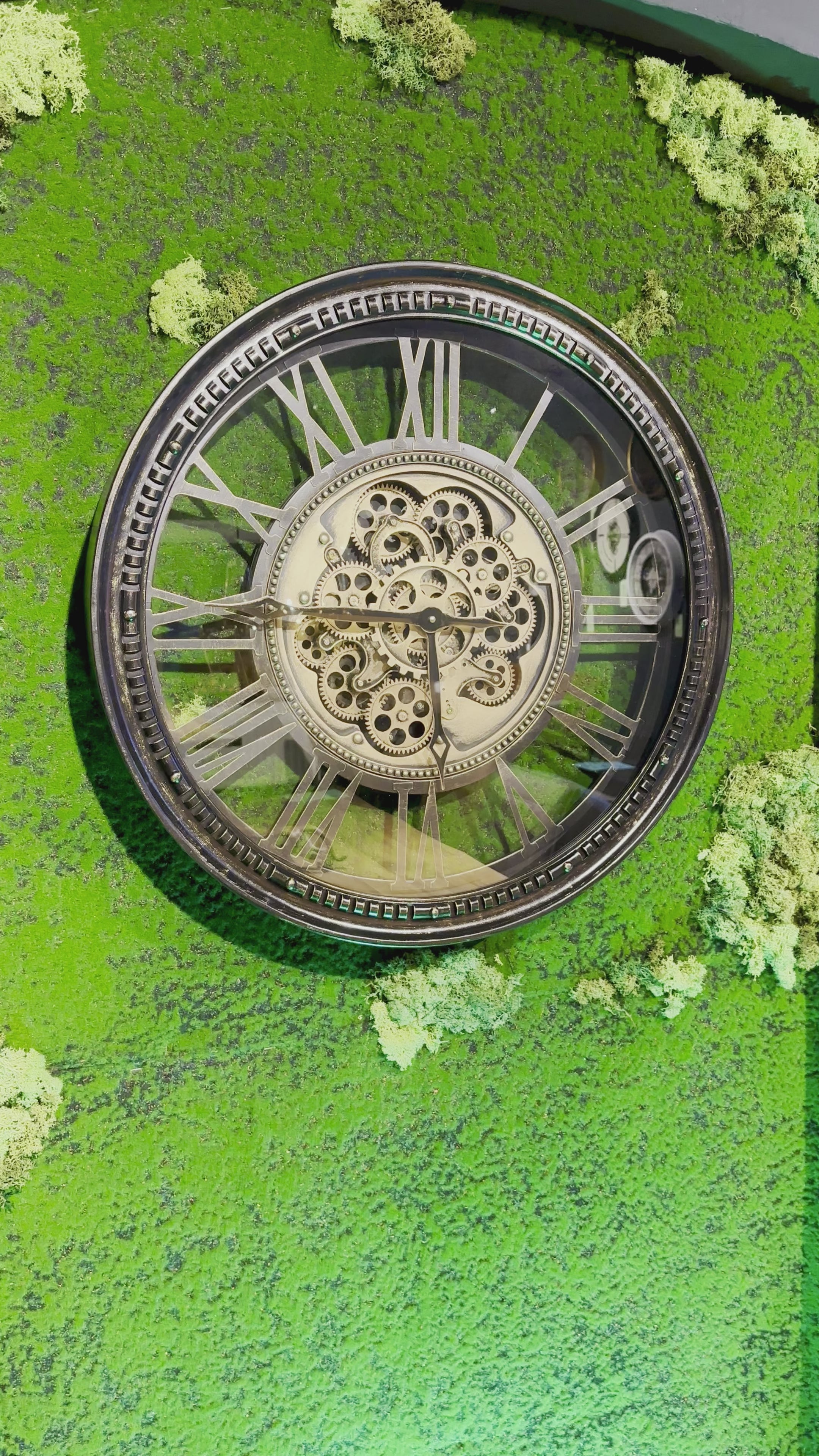 Die Animationsuhr hat römische Zahlen und kann hängend an die Wand montiert werden.