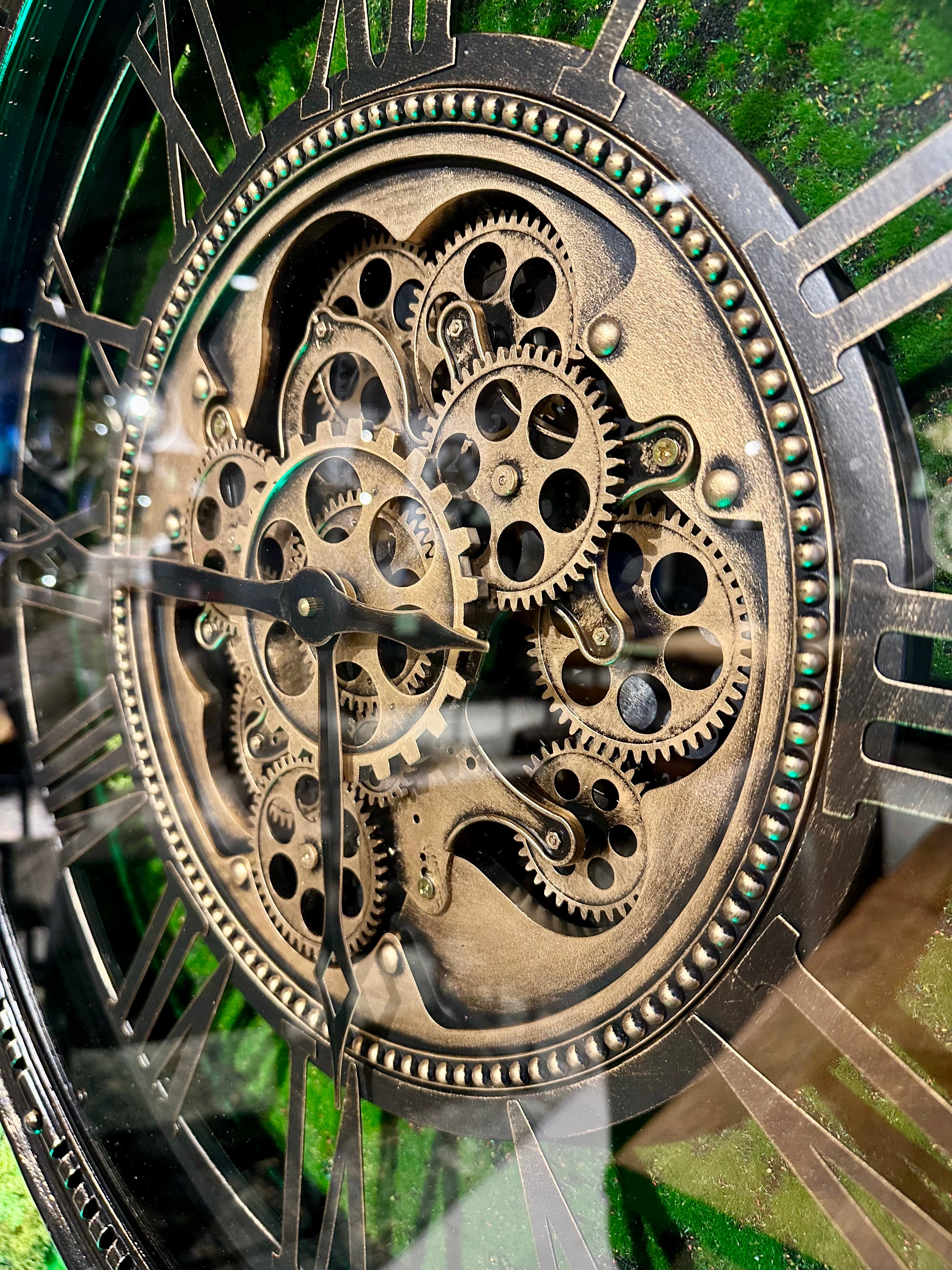 Die animierte Zahnradhr hat goldfarbige Zahnräder und ist überaus leise.